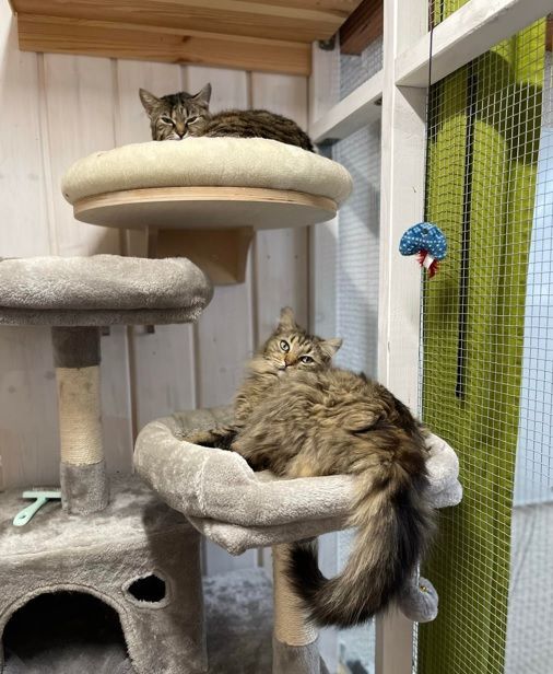 Somit können wir, wenn die Katzen verträglich miteinander sind, wie z. B. in Animal-Hoarding Fällen, bis zu 45 Katzen gleichzeitig aufnehmen.
